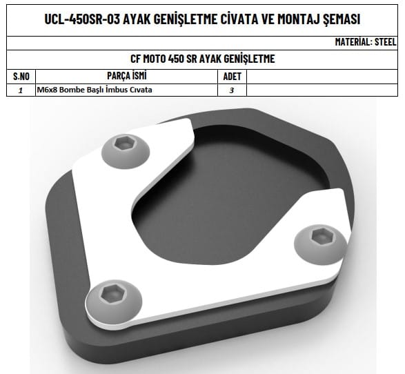motorunuzun en iyi şekilde korumak ve sürüş keyfinizi artırmak için bu ayak genişletme mükemmel bir tercihtir. Sağlam yapısı ve şık tasarımı ile motorunuza hem estetik hem de fonksiyonel bir katkı sağlar.