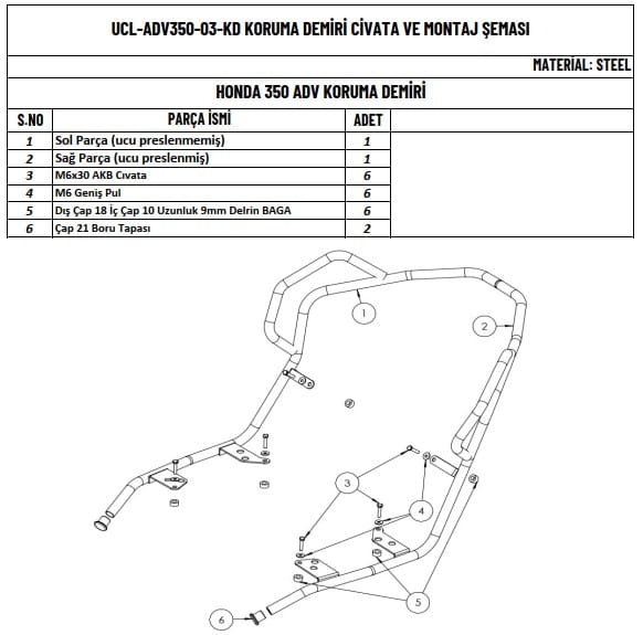 Motorunuzun güvenliğini ve dayanıklılığını artırmak için tasarlanmıştır, Yüksek kaliteli metal malzemeden üretilmiştir, ve darbelere karşı ekstra koruma sağlar ve zorlu doğa şartlarına karşı üstün direnç gösterir.