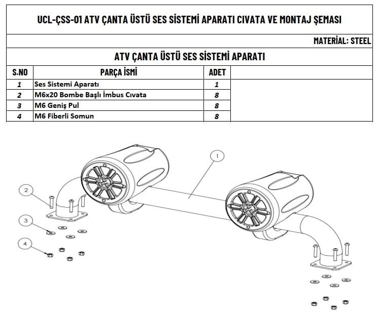 ATV’nizin ile zor arazi şartlarında eğlencenizi arttırmak amaçlı tasarlanmış olan bu çanta üzeri ses sistemi aparatı, Yüksek kaliteli demirden üretilmiş olan bu demir, darbelere ve zorlu doğa şartlarına karşı üstün direnç gösterir.