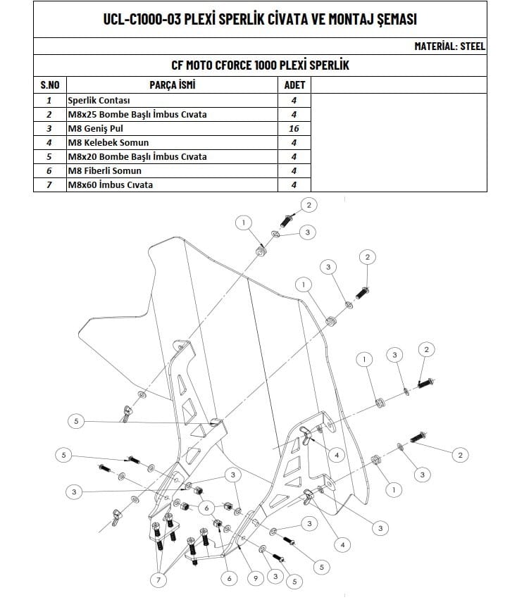 Yalnızca CFORCE 1000 ATV modeli ile uyumludur, tam oturur ve maksimum koruma sağlar, sürüş esnasında maksimum görüş açısı sunar ve güvenliğiniz için önemli bir katman oluşturur.