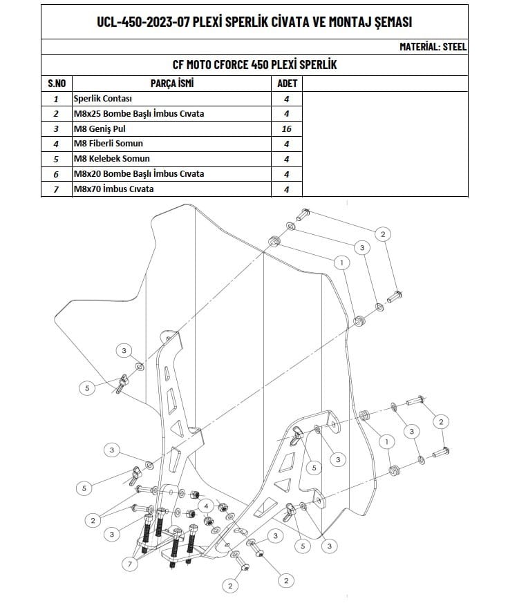 Yalnızca CFORCE 450 L ATV modeli ile uyumludur, tam oturur ve maksimum koruma sağlar, sürüş esnasında maksimum görüş açısı sunar ve güvenliğiniz için önemli bir katman oluşturur.