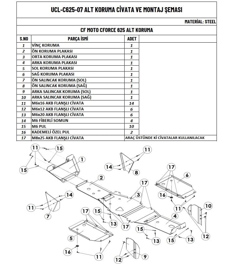 ATV’nizin güvenliğini ve dayanıklılığını artırmak için tasarlanmış olan bu alt koruma, zorlu arazi koşullarında maksimum koruma sağlar. Yüksek kaliteli metal malzemeden üretilmiştir, darbelere ve zorlu doğa şartlarına karşı üstün direnç gösterir.