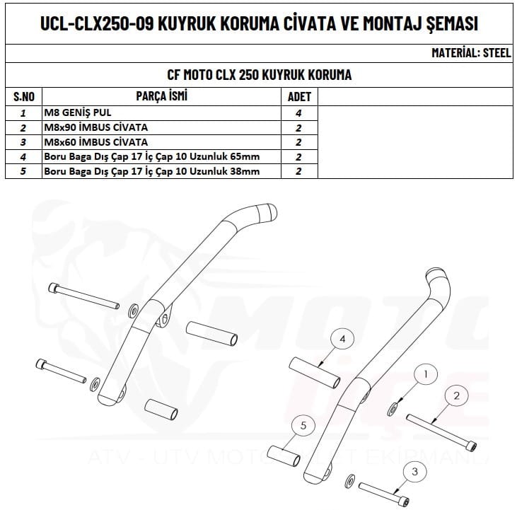 •Kolay Montaj: motorunuza kolayca monte edilebilecek şekilde tasarlanmıştır, kurulum için gerekli tüm montaj aparatları dahildir.