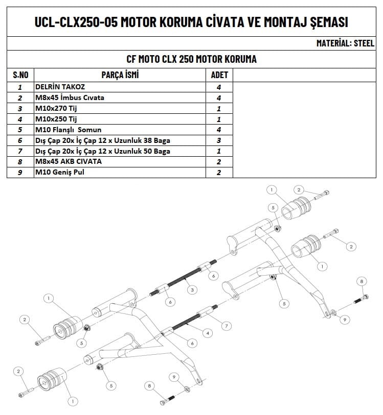Motorunuzun güvenliğini ve dayanıklılığını artırmak için tasarlanmıştır, Yüksek kaliteli metal malzemeden üretilmiştir, ve darbelere karşı DELRİN TAKOZ ekstra koruma sağlar ve zorlu doğa şartlarına karşı üstün direnç gösterir.