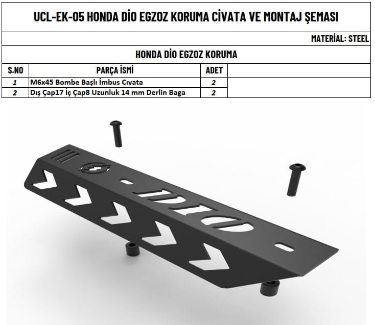 •Ekstra Koruma: Egzoz koruma çarpma ve sürtünmelere karşı koruyarak motorunuzun ömrünü uzatır.