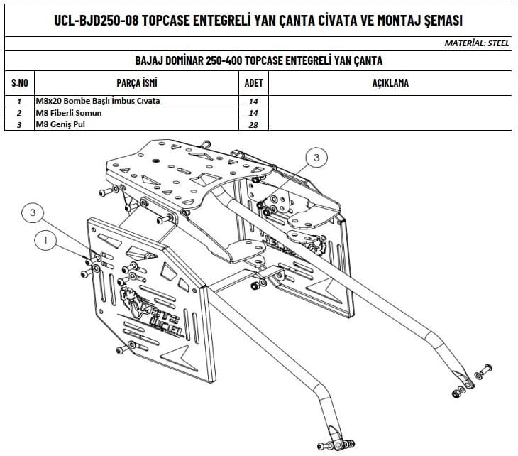 MOTOÜÇEL motosiklet yan çanta demiri sayesinde çantalarınızı sabitleyerek güvenle yolculuk yapabilirsiniz Çok amaçlı kullanabileceğiniz şık görünüm sağlayacak bir üründür.