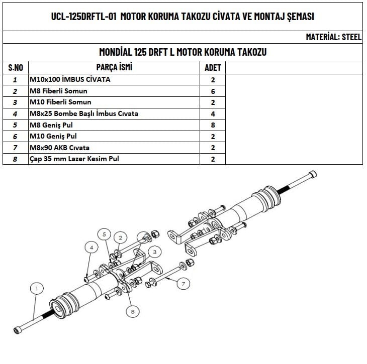 Motorunuzun güvenliğini ve dayanıklılığını artırmak için tasarlanmıştır, Yüksek kaliteli boru ve sac metal malzemeden üretilmiştir, darbelere karşı DELRİN malzeme ekstra koruma sağlar ve zorlu doğa şartlarına karşı üstün direnç gösterir.