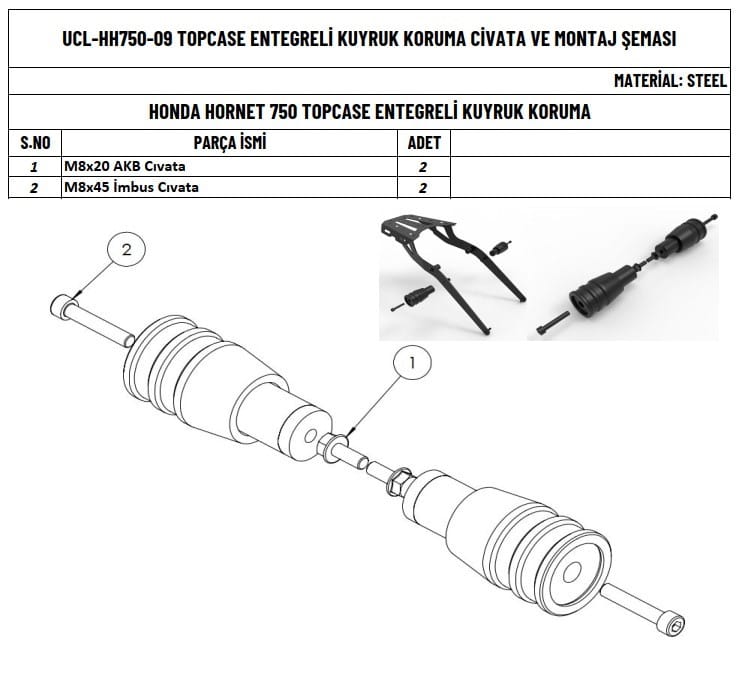 GÖRSELDEKİ SADECE KUYRUK KORUMA GÖNDERİLMEKTEDİR. MOTOÜÇEL ÇANTA DEMİRİ MEVCUT İSE UYUMLUDUR. DİĞER ÇANTA DEMİRLERİNE UYUMLU DEĞİLDİR.