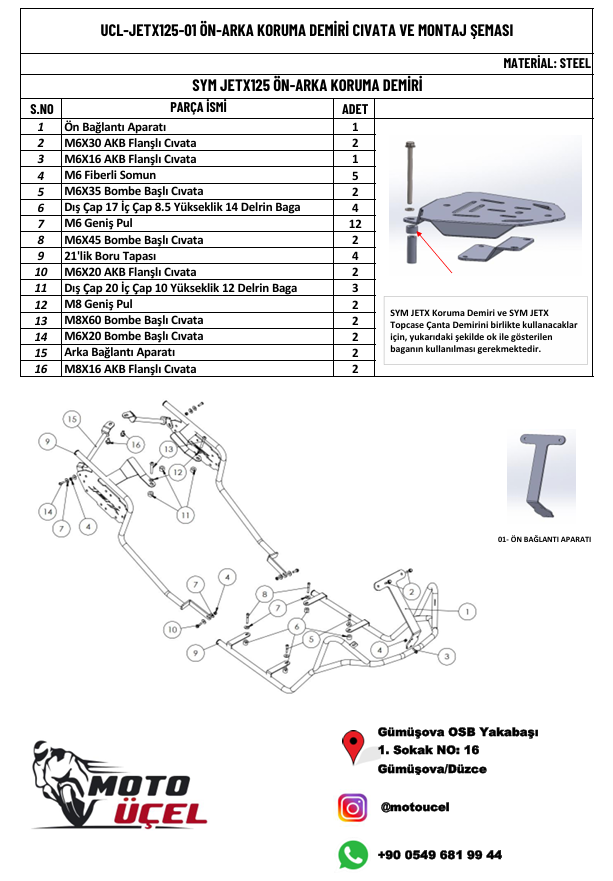 •Kolay Montaj: motorunuza kolayca monte edilebilecek şekilde tasarlanmıştır, kurulum için gerekli tüm montaj aparatları dahildir.