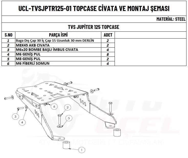 Çanta demiri, motosikletinizin stok halinde bulunmayan, seyahatlerde olmazsa olmaz topcase (çanta) sabitlemeye yarayan en önemli aksesuardır. MOTOÜÇEL motosiklet çanta demiri sayesinde çantalarınızı sabitleyerek güvenle yolculuk yapabilirsiniz. Ayrıca artçınızın arkasına yaslanarak rahat bir yolculuk yapmasını sağlar. Çok amaçlı kullanabileceğiniz şık görünüm sağlayacak bir üründür.