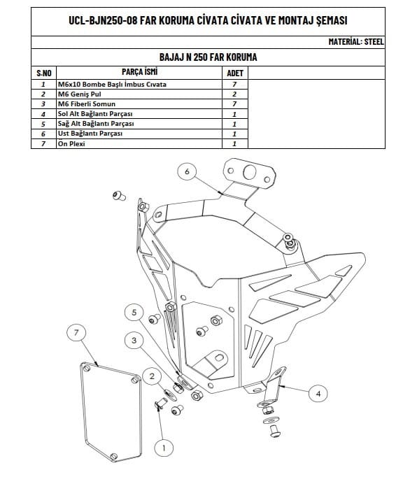 Motorunuzun güvenliğini ve dayanıklılığını artırmak için tasarlanmıştır, Yüksek kaliteli metal malzemeden üretilmiştir, darbelere karşı pleksi malzeme ekstra koruma sağlar ve zorlu doğa şartlarına karşı üstün direnç gösterir.