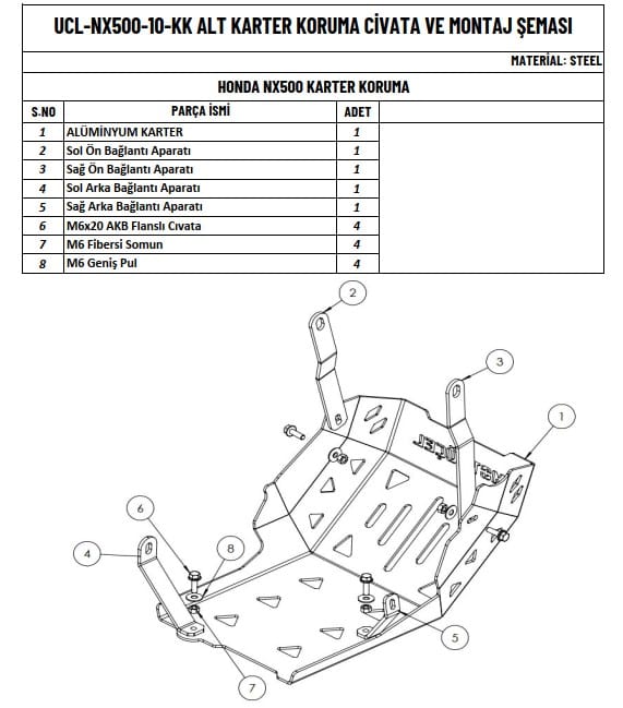•Ekstra Koruma: Karter koruma çarpma ve sürtünmelere karşı koruyarak motorunuzun ömrünü uzatır.
