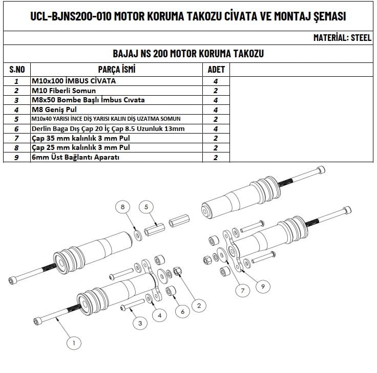 •Kolay Montaj: motorunuza kolayca monte edilebilecek şekilde tasarlanmıştır, kurulum için gerekli tüm montaj aparatları dahildir.