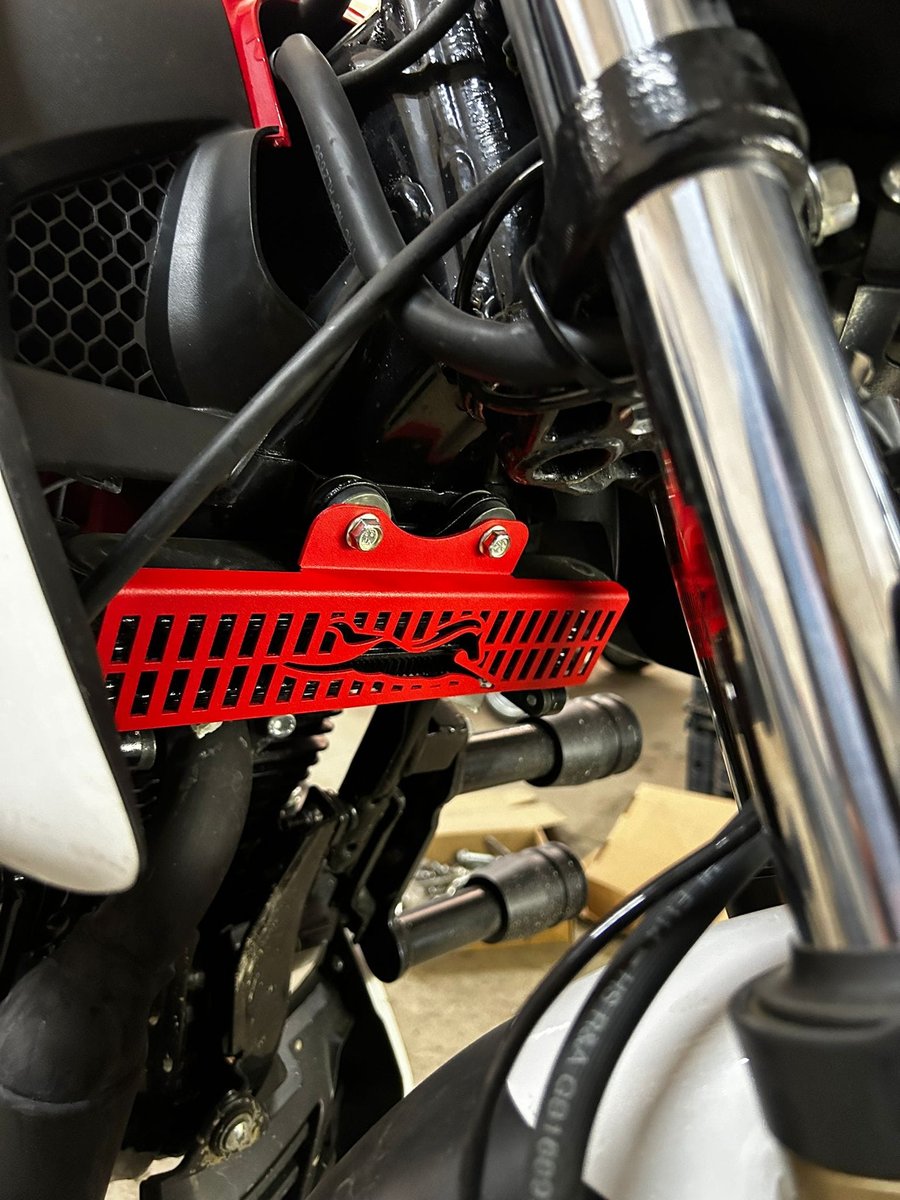 MOTO ÜÇEL Radyatör Koruma sayesinde motosikletinizin en önemli parçalarından biri olan radyatörünüzü çamur, taş, mıcır vs. gibi zarar verebilecek sert cisimlere karşı korurken, motor sıcaklığının da artmasını engeller. Alüminyum malzemeden üretildiği için daha çabuk soğur. Montajı pratik ve kolaydır. Özel elektrostatik boyalıdır. Orijinal vida ile montaj yapılmaktadır