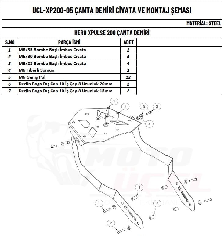 Çanta demiri, motosikletinizin stok halinde bulunmayan, seyahatlerde olmazsa olmaz topcase (çanta) sabitlemeye yarayan en önemli aksesuardır. MOTOÜÇEL motosiklet çanta demiri sayesinde çantalarınızı sabitleyerek güvenle yolculuk yapabilirsiniz. Ayrıca artçınızın arkasına yaslanarak rahat bir yolculuk yapmasını sağlar. Çok amaçlı kullanabileceğiniz şık görünüm sağlayacak bir üründür.