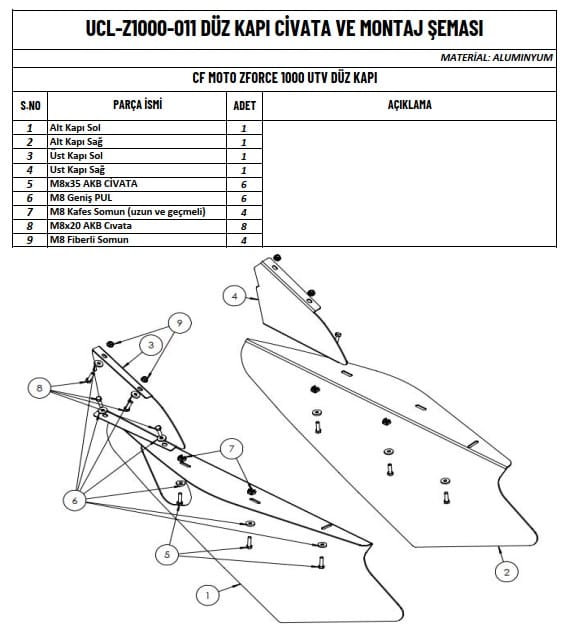 •Maksimum Uyum: Yalnızca Z FORCE 1000 UTV modeli ile uyumludur, tam oturur ve maksimum koruma sağlar.
