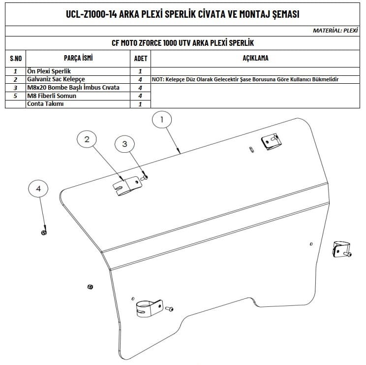 •Maksimum Uyum: UTV’nize kolayca monte edilebilecek şekilde tasarlanmıştır, kurulum için gerekli tüm montaj aparatları dahildir.