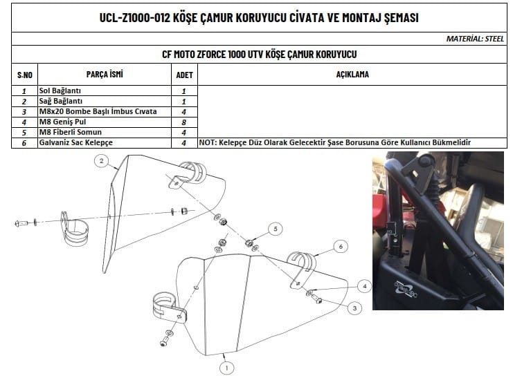 UTV’nizde size arka köşeden çamur gelmemesi için tasarlanmış olan köşe çamur koruyucusu ile zorlu arazi koşullarında maksimum koruma sağlar. Yüksek kaliteli metal malzemeden üretilmiştir, darbelere ve zorlu doğa şartlarına karşı üstün direnç gösterir.
