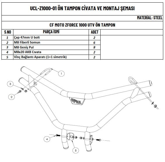 UTV’nizi en iyi şekilde korumak ve sürüş keyfinizi artırmak için bu ön tampon koruma demiri mükemmel bir tercihtir. Sağlam yapısı ve şık tasarımı ile UTV’nize hem estetik hem de fonksiyonel bir katkı sağlar.
