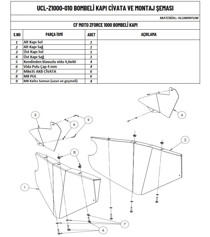 •Maksimum Uyum: Yalnızca Z FORCE 1000 UTV modeli ile uyumludur, tam oturur ve maksimum koruma sağlar.