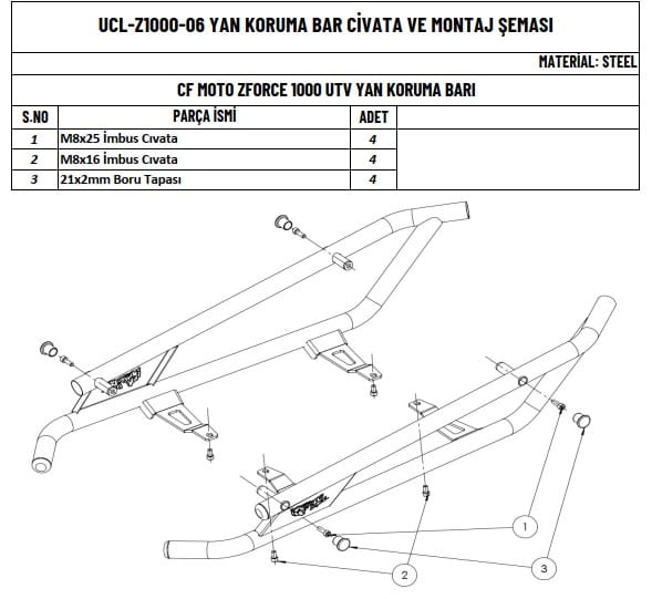 UTV’nizi en iyi şekilde korumak ve sürüş keyfinizi artırmak için bu yan bar koruma demiri mükemmel bir tercihtir. Sağlam yapısı ve şık tasarımı ile UTV’nize hem estetik hem de fonksiyonel bir katkı sağlar.